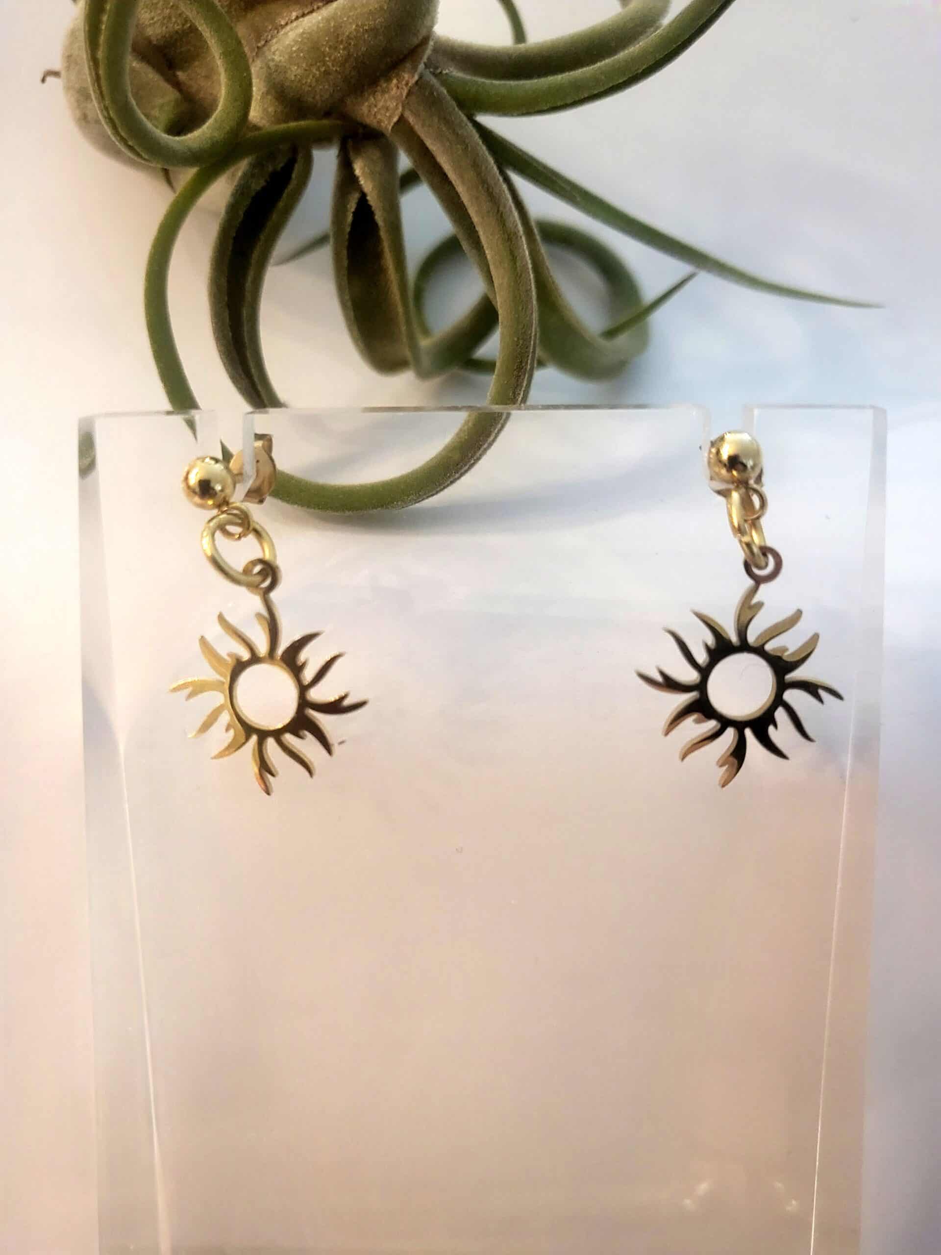 boucles d’oreilles soleil acier inoxydable doré